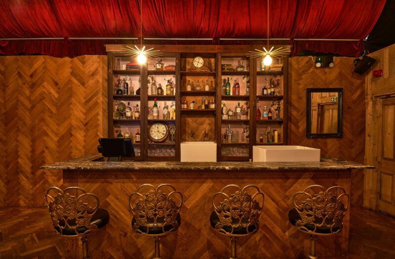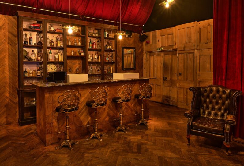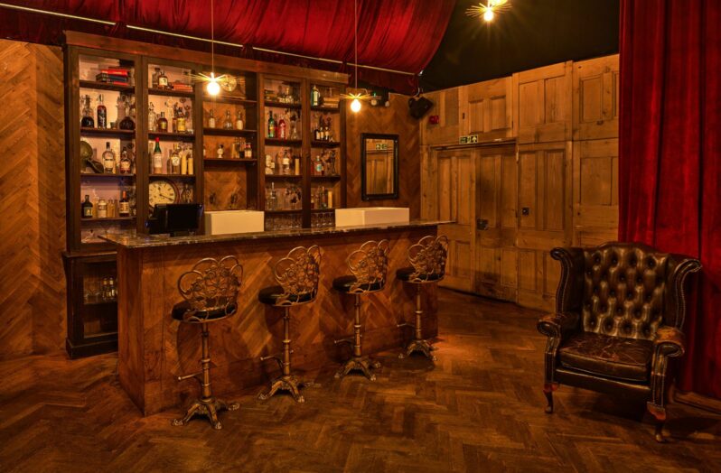 The Drawing Room is an exclusive and intimate cocktail bar, ideal for exclusive dinners, meetings and corporate parties. From start to finish the venue guarantees an unforgettable experience. The secret door hidden behind a bookshelf creates an intriguing atmosphere, along with the period bar, leather furnishing and walls lined with books.
