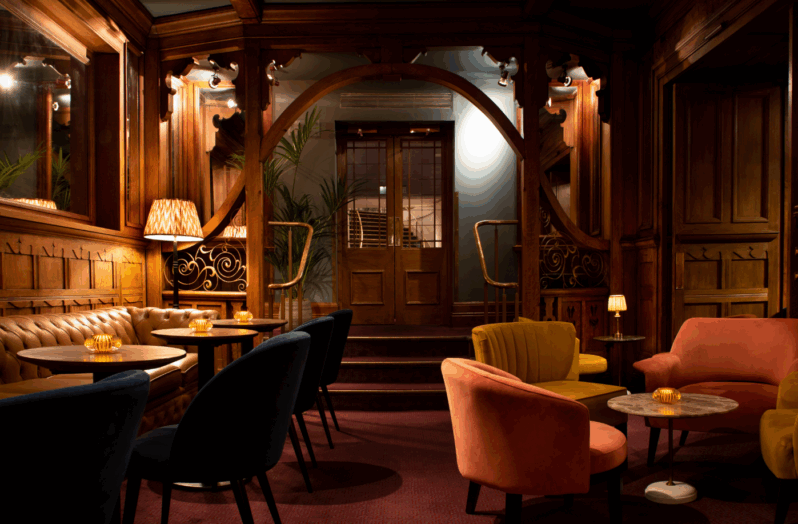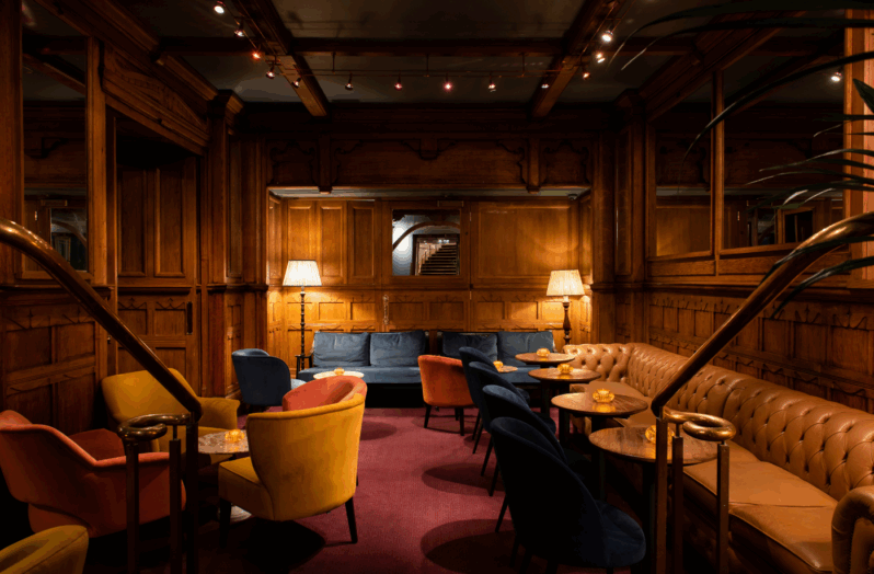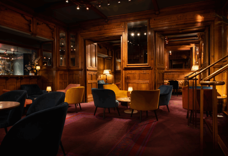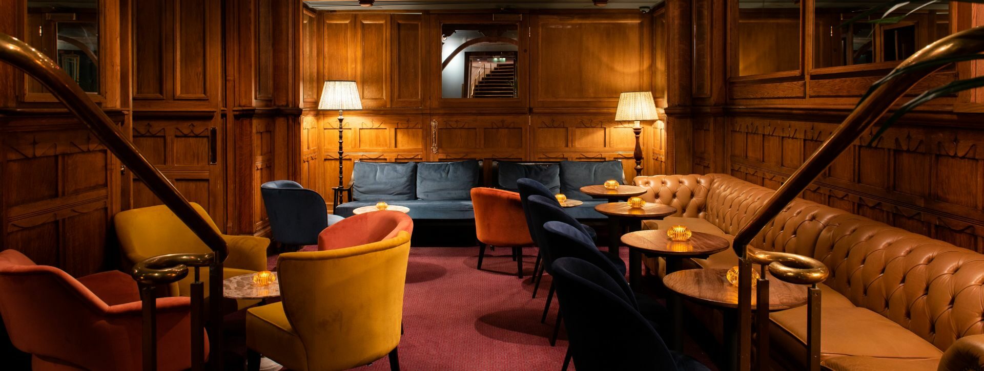 Step into timeless elegance at The American Bar, a beautifully preserved space within the iconic London Coliseum. Featuring original Edwardian oak panelling, antique mirrors, and a private bar, this warmly lit venue exudes charm and sophistication.