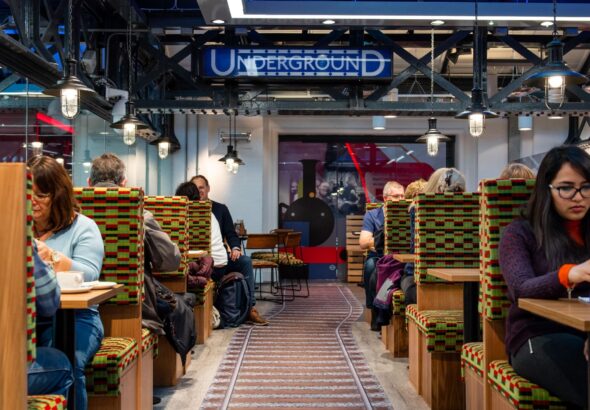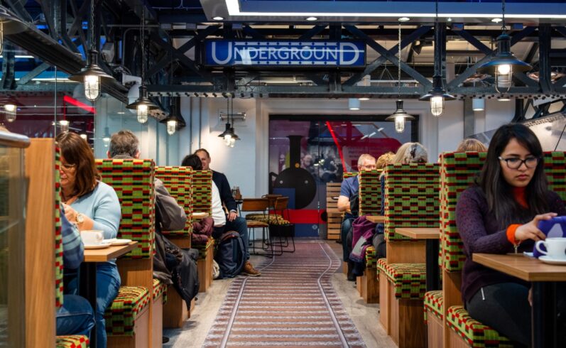 Our café at the London Transport Museum is a must for transport lovers, decked out in tube artefacts throughout. We’ve got a variety of warm dishes, delicious sandwiches and soups, freshly baked cakes, as well as both hot and cold beverages.